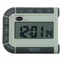 This device features 4 timers in one compact unit with 24 hour countdown and count up function. It also beneifts from a large easy to read display and a 12/24 hour clock. This timer comes complete with stand and magnetic clip. Batteries included.