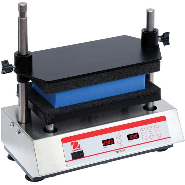 Stainless steel foam rack for (50) 12 mm diameter tubes (included), interchangeable foam racks for vortexing tubes from 10 - 29 mm in diameter