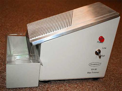 The melted paraffin is shaved away and drains down into the included removable tray below.